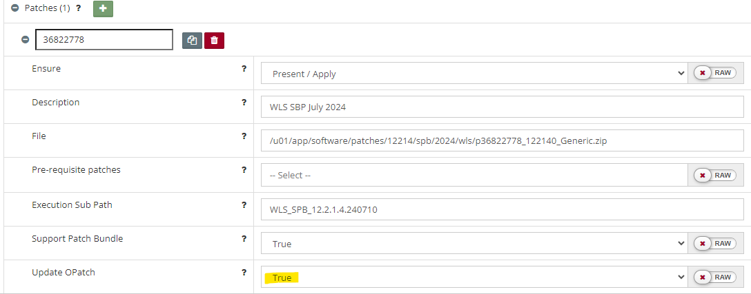 [ /u01/app/oracle/product/fmw1221/OPatch/opatch napply -silent -oh /u01/app/oracle/product/fmw1221 -phBaseFile /tmp/664400523/WLS_SPB_12.2.1.4.240710/binary_patches/linux64_patchlist.txt ]
